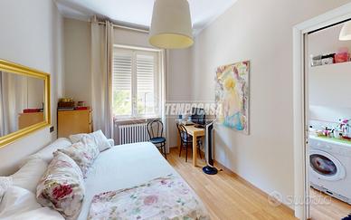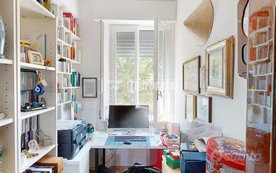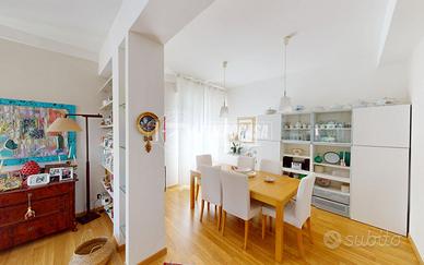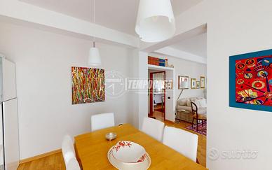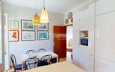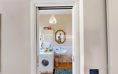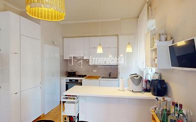 Nell'appartamento resteranno gli arredi su misura, tra cui cucina e bagno.