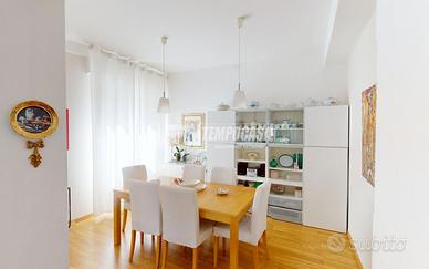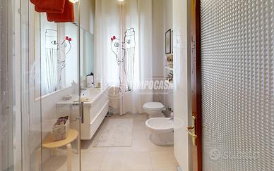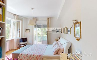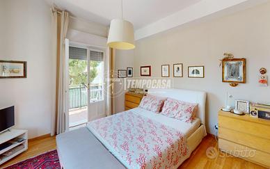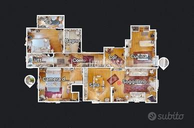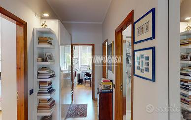 L'appartamento curato ed accogliente è composto da: ingresso con porta blindata, cucina abitabile con uscita sul balcone, ampio soggiorno con uscita sul balcone e sala da pranzo, corridoio notte, bagno finestrato con cabina doccia, camera matrimoniale con uscita sul balcone, comodo studio e camera singola con bagno en suite e lavanderia. Completano la proprietà un garage di 14mq e una cantina di 8mq al piano seminterrato.