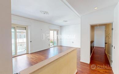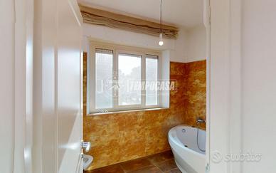 L'appartamento è composto da: ingresso con porta blindata, comodo ripostiglio, studio, ampio e luminoso soggiorno con uscita sul balcone, sala da pranzo con uscita sul balcone e cucina abitabile, corridoio notte, camera singola, bagno finestrato con vasca e camera matrimoniale con bagno ensuite. Completa la proprietà un garage di 15mq e una cantina di 14mq al piano seminterrato, raggiungibili direttamente dall'appartamento attraverso le scale interne.