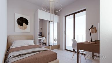 Attraverso il disimpegno, scopri due camere singole da 9 mq ciascuna: intime, riservate, ideali per crescere, concentrarsi, o semplicemente trovare il proprio spazio. E poi la camera matrimoniale: 15 mq di quiete e luce, arricchiti da una terrazza privata esposta a est -- 8,5 mq dove il sole arriva al primo mattino, discreto e dorato.