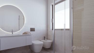 Due bagni con doccia, già completi di sanitari, di cui uno si affaccia su un balcone secondario di quasi 7 mq (esposto a sud): un respiro d'aria anche nella zona più intima della casa.