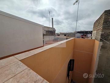 L'APPARTAMENTO E' TOTALMENTE RESTAURATO,SI COMPONE DA UN INGRESSO CUCINA-SOGGIORNO,LAVANDERIA,BAGNO,3 CAMERE DA LETTO,TERRAZZO DI 90 MQ CON ACCESSO DAL VANO SCALA TROVIAMO UNO STANZINO,