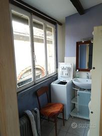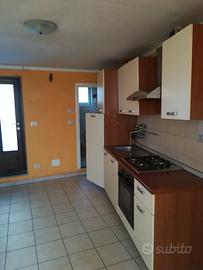 Bagno (scalda acqua boiler con doccia), tinello-cucina al piano terra, camera da letto e lavanderia al primo piano con balcone.