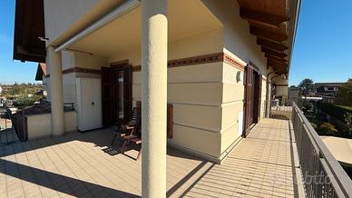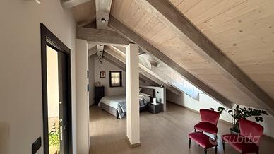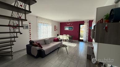 Casa su due livelli di 150 mq, al primo piano ingresso su ampio soggiorno, cucina abitabile, camera da letto e bagno, ampia terrazza e due balconi. Al piano superiore ampia camera mansardata, bagno cabina armadio e terrazza. Possibilità di creare tre stanze al piano mansarda. Completa la proprietà cantina e box al prezzo di 20000€