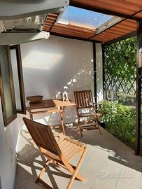 In veranda è allocata, con protezione, la caldaia dell'attivo impianto gas metano, che serve l'edificio e un climatizzatore dedicato ai vani del pianoterra.