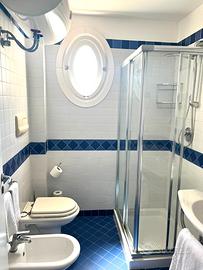 L' offerta comprende accesso in piscina con incluso due sdraio, appartamento completo posto auto, aria condizionata e posaterie.