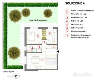 Appartamenti di 70-80 mq con 2 camere da letto, terrazzo o giardino privato. Edificio antisismico in classe A+/A++, realizzato con materiali ad alte prestazioni termoacustiche (blocchi cassero Isotex). Infissi in PVC, riscaldamento e raffrescamento autonomi a pompa di calore canalizzata. Finiture di pregio, posto auto coperto, cancello motorizzato, area verde condominiale. Possibilità di personalizzazione delle finiture interne. Consegna 2027