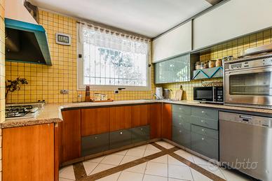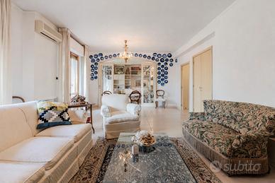 Rif 1007-457 Nel cuore della ricercata zona dei Punici, appena sopra Viale Trento, proponiamo un' opportunità abitativa capace di coniugare tranquillità, spazio e qualità della vita. All'interno di un elegante complesso residenziale composto da tre fabbricati, immerso in una strada chiusa e riservata al solo passaggio dei residenti, proponiamo in vendita un luminoso appartamento al piano rialzato di circa 120 mq netti, impreziosito da un esclusivo giardino privato di circa 135 mq: uno spazio prezioso, in parte piantumato e in parte pavimentato, ideale per momenti di relax, convivialità o per chi desidera vivere appieno gli ambienti esterni. L'abitazione, oggi caratterizzata da un ampio e accogliente doppio soggiorno, una sala da pranzo, una cucina abitabile, due bagni e un balcone, presenta attualmente una sola camera da letto. In passato, infatti, era stata collegata al piano superiore tramite una scala interna per creare una residenza di grande metratura. In vista della vendita separata dei due livelli (già distinti dal punto di vista catastale e urbanistico), la proprietà provvederà al ripristino dello stato originario, eliminando la scala e ricostruendo il solaio. Questo consentirà al futuro acquirente, con interventi contenuti, di ridisegnare gli spazi e ricavare facilmente altre due camere da letto, riportando l'immobile alla sua configurazione di comodo quadrivano (vedi ipotesi tra le planimetrie pubblicate). La casa si presenta in buone condizioni generali ed è dotata di comfort fondamentali: riscaldamento autonomo a gas di città, termosifoni, scaldasalviette nei bagni e pompe di calore in tutti gli ambienti, per un benessere abitativo durante tutto l'anno. Completano la proprietà un posto auto coperto (ideale per utilitaria) e una spaziosa cantina al piano seminterrato, comodamente collegata tramite ascensore. Nella corte interna condominiale, inoltre, è disponibile un'ottima possibilità di parcheggio libero. N.B. ancora disponibile anche il piano primo
