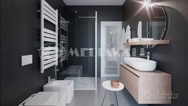 L'appartamento si dispone su un unico livello ed è composto da ampia zona living con cucina a vista eventualmente separabile e doppio accesso ad un ampio terrazzo coperto. A seguire, la zona notte è composta da un disimpegno che dà accesso alle 2 ampie camere da letto, ai due bagni finestrati con box doccia, completi di tutti i sanitari e ad un secondo ampio terrazzo con centrale termica/lavanderia.