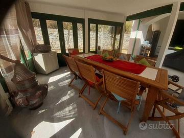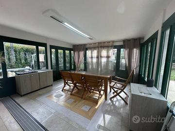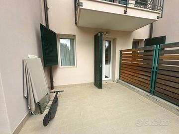 (Riferimento: 283242) Appartamento con giardino, patio coperto e box doppio servito da ascensore In zona residenziale tranquilla, a 3 minuti dal mare, proponiamo in vendita splendido quadrilocale al piano terra, sito in palazzina di recentissima costruzione (2018), in condizioni pari al nuovo. L'immobile vanta una superficie di circa 180 mq commerciali(circa 106 mq calpestabili), ed è così composto: * Ingresso su disimpegno * Ampio soggiorno con cucina a vista * Due camere da letto, di cui una matrimoniale * Due bagni finestrati, uno con doccia e uno con vasca Spaziosa terrazza semi-perimetrale di circa 30 mq con cucina estiva Giardino privato** di circa 300 mq, dotato di patio coperto utilizzabile tutto l'anno (circa 40 mq) Comfort e dotazioni: * Classe energetica A1 * Infissi in legno con doppi vetri * **Porta blindata** * Doppio sistema di riscaldamento: caldaia a gas metano esterna + pompa di calore inverter caldo/freddo con split in soggiorno e camere * Impianto d'allarme e videosorveglianza su tutto il perimetro * Tripla esposizione: Sud - Ovest - Nord * Spese condominiali contenute: circa 1.200 €/anno Box doppio al piano interrato (circa 30 mq commerciali / 25 mq utili), raggiungibile comodamente tramite ascensore o scale. ideale per famiglie, coppie o chi cerca **un'abitazione moderna, efficiente e con ampi spazi esterni**, senza rinunciare alla vicinanza ai servizi e al centro.