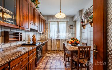 L'appartamento è così composto: Ingresso, grande e luminoso soggiorno di oltre 25 mq, terrazzo che affaccia sul cortile interno, cucina separata abitabile in cui si trova la caldaia a condensazione cambiata nel 2023, con annessa una comoda loggia coperta; disimpegno per la zona notte, ad oggi sfruttato con armadiature a muro, primo bagno, un secondo bagno con angolo per la lavanderia e 3 camere da letto, di cui due matrimoniali e una tre/quarti.