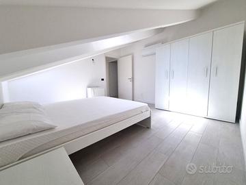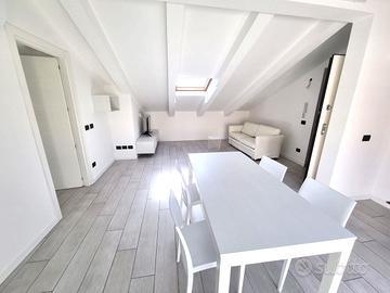 (Riferimento: A01063) Via Cavour - nuovo e ben arredato splendido appartamento mansardato in piccola palazzina nel centro della città composto da ingresso sull'ampio soggiorno con accesso alla terrazza vivibile, angolo cottura separato, camera da letto matrimoniale e seconda comoda camera uso letto o studio, 2 bagni completi dotati di grande piatto doccia. Riscaldamento e condizionamento tramite pompe di calore in tutti gli ambienti, travi in legno a vista, porta blindata, ascensore, riserva idrica. Pronto per l'utilizzo con finiture superiori.