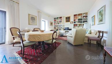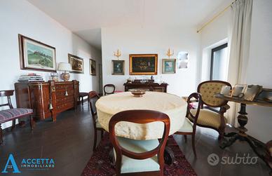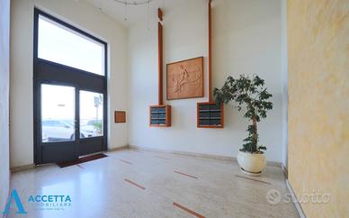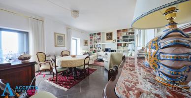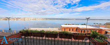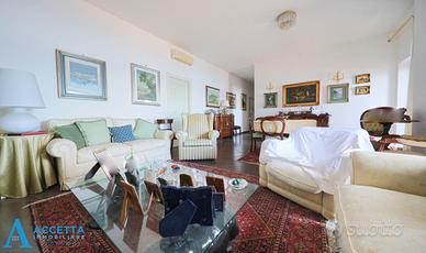 (Riferimento: 380) PROPONIAMO IN VENDITA NEL PUNTO PIU' PRESTIGIOSO DI TARANTO, ALL'INTERNO DI ESCLUSIVISSIMO STABILE DI RECENTE RI-COSTRUZIONE CON AREA PARCHEGGIO COPERTA, UN CONFORTEVOLE APPARTAMENTO DALLA SUGGESTIVA VISTA MARE E DALLE RAFFINATE RIFINITURE INTERNE. Situato su Via Roma, tra Corso Due Mari e Via Regina Margherita il palazzo è stato oggetto di un recente intervento complessivo di ri-costruzione, condotto con particolare attenzione e cura dei dettagli e delle finiture e caratterizzato dalla scelta di linee sobrie e raffinate. Lo stabile è dotato di ascensore, presenta spazi comuni, androne e vani scala, caratterizzati da scelte architettoniche eleganti e minimali, è presente una comodissima area parcheggio coperta e di pertinenza privata, con accesso diretto dalla strada. L' abitazione, ubicata al secondo piano è composta da un accogliente ingresso, un ampio soggiorno con due vetrate e balconi con affaccio sul Mar Piccolo, una cucina abitabile dotata anch'essa di vetrata e balcone con affaccio sul mare; attraverso un disimpegno si accede alla zona notte, nella quale sono presenti una camera matrimoniale dotata di bagno personale e cabina armadio, due ulteriori camere, un secondo bagno ed un balcone verandato con affaccio interno; completa la proprietà il posto macchina coperto di proprietà. Inserito all'interno di un contesto esclusivo e signorile, l'immobile è inoltre dotato di impianto di riscaldamento autonomo, climatizzatore, porta blindata, persiane e infissi in alluminio con doppio vetro, pavimentazione e rivestimenti in gres di prima qualità, il tutto in ottime condizioni.