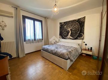 Tribano: Appartamento quadrilocale di 111 mq circa posto al primo piano di bifamiliare orizzontale di sole due unità, completo di garage di 24 mq e cantina adiacente, piccola porzione di terreno agricolo situato all'interno del lotto dell'abitazione di circa 80 mq. L'appartamento, dotato di ingresso indipendente, si sviluppa su tutto il primo piano e precisamente: corridoio d'ingresso dal quale è possibile accedere alla cucina finestrata con arredamento compreso, il soggiorno con poggiolo annesso, due camere matrimoniali, una camera singola ed il bagno finestrato con doccia.Cucina arredata e stufa a pellet inclusi nella vendita. A completare garage posto sotto l'abitazione di facile accesso, cantina e terreno agricolo di 80 mq.