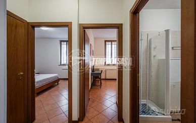 Porta Scorrevole esterno Muro in Cucina, mentre nel resto della soluzione Porte Tamburate in Legno con Apertura a Battente