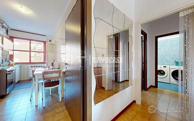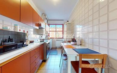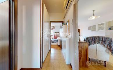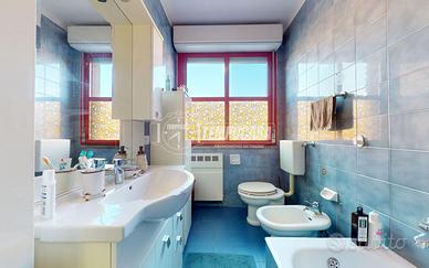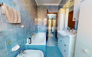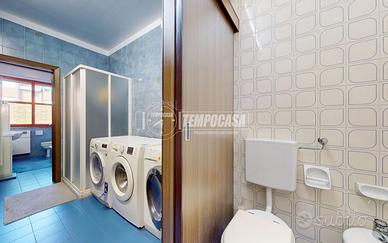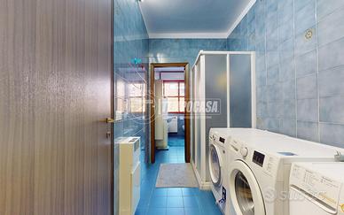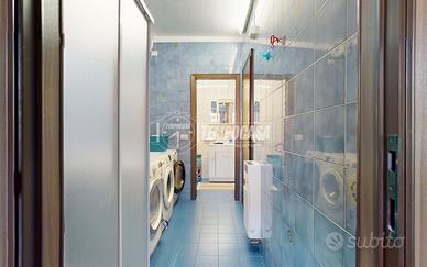 - Disimpegno attualmente adibito a lavanderia e con box doccia di 4,6 mq, che conduce al bagno finestrato principale di 4,8 mq oltre ad un ripostiglio che si presta a secondo bagno cieco di 2,3 mq.