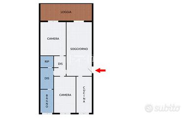 - Soggiorno - pranzo di 24 mq con accesso diretto alla loggia di 13,89 mq