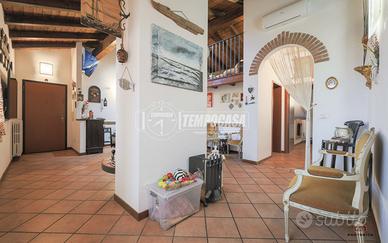 La Tempocasa di Castel San Pietro propone in vendita nel cuore del centro storico, all'interno di un palazzo d'epoca perfettamente mantenuto, un affascinante appartamento di circa 160 mq, situato al secondo ed ultimo piano senza ascensore. L'appartamento dotato di doppio ingresso è composto da un luminoso soggiorno con camino, perfetto per momenti di relax o convivialità e una spaziosa cucina abitabile, accogliente e funzionale, ideale per chi ama vivere la casa. La zona notte ospita due camere da letto di generose dimensioni e due bagni finestrati, entrambi ben rifiniti. Ad impreziosire e rendere unica la proprietà, troviamo un elegante soppalco che regala un tocco di originalità e calore, offrendo uno spazio aggiuntivo da personalizzare secondo le proprie esigenze. L'appartamento si presenta in ottime condizioni interne, dotato di aria condizionata e riscaldamento autonomo, per garantire il massimo comfort in ogni stagione. Un'abitazione ricca di atmosfera, perfetta per chi desidera vivere il centro storico senza rinunciare a spazi ampi, luminosità e privacy, in un contesto curato. A completare la proprietà troviamo due cantine al piano interrato. Riferimento immobile: 524 - Classe: NC