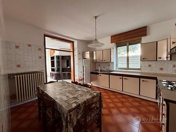 CASNIGO In casetta di sole tre unità abitative, senza spese condominiali, proponiamo ampio appartamento al piano terra di circa 120 mq, libero su quattro lati e dotato di doppio ingresso. L'abitazione è composta da cucina, grande soggiorno, disimpegno, tre spaziose camere da letto, bagno, ripostiglio e due terrazzi. L'immobile viene venduto completo dell'aredo esistente. Completano la proprietà una porzione di solaio al piano secondo, un box di 22 mq e un magazzino di 18 mq al piano terra. C.E.G 519,38 kWh/m2a