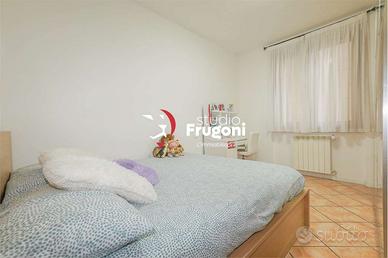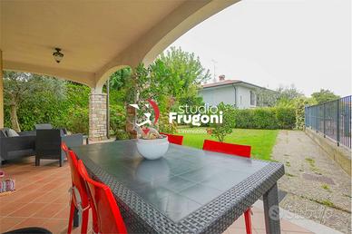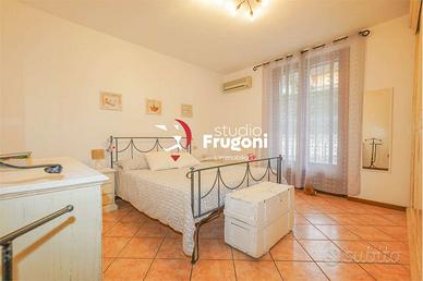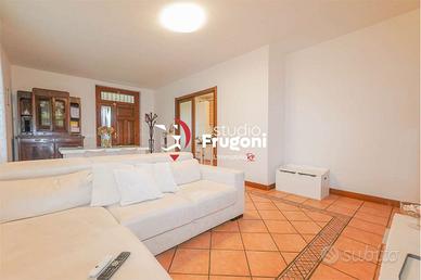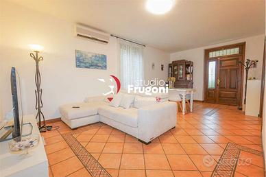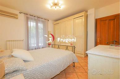 In condominio composto da soli 10 appartamenti, al piano terra con ingresso indipendente da strada pubblica, l'appartamento si sviluppa al piano terra su di un unico piano, di buona metratura (circa 90 mq), composto da sala, cucina, tre camere, bagno con ampio interrato (che è possibile di collegare internamente attraverso un vano scale interno la cui apertura nella soletta è già predisposta) composto da due vani ad uso studio e camera ospiti, bagno lavanderia. Completa la proprietà un ampio giardino che si dispone sui due lati della casa (il terzo lato si affaccia sull'ingresso privato all'interrato), il comodo portico di 25 mq e l'ampio giardino (con molta privacy, protetto da ampie siepi).