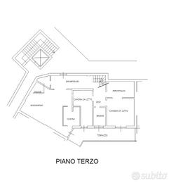 Posto al terzo e quarto piano, al terzo piano e presente la zona giorno che è composta dal soggiorno, cucina semi abitabile, camera da letto, un bagno finestrato ed infine una seconda camera da letto matrimoniale con annessa la cabina armadio