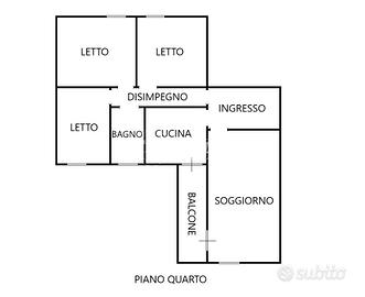 Al quarto piano di una palazzina con ascensore, proponiamo luminoso appartamento composto da ingresso, ampio soggiorno, cucina separata con accesso al balcone comunicante con il soggiorno, disimpegno, tre camere da letto e bagno finestrato.