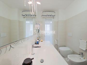 Completano la proprietà una cantina al piano terra e due posti auto condominiali. L'appartamento è stato ristrutturato e dispone di impianti aggiornati e spazi interni ben distribuiti.