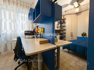 L'immobile è composto da ingresso, soggiorno con accesso a un balcone, cucina abitabile con secondo balcone dove è presente la zona lavanderia collegata al bagno finestrato. La zona notte comprende tre camere matrimoniali.