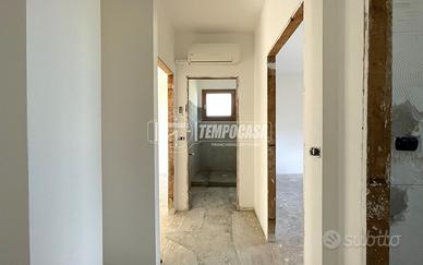 L'ingresso si apre su un lungo disimpegno che conduce a un ampio soggiorno con accesso diretto a un balcone e a una cucina separata e abitabile.