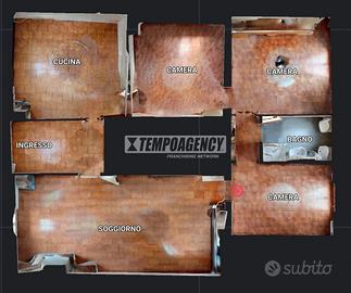 L'immobile, in buone condizioni generali, è così composto: ingresso su disimpegno, soggiorno luminoso, cucina abitabile, tre camere da letto e bagno finestrato. Completa la zona giorno un balcone che garantisce ottima luminosità e sfogo esterno. A servizio dell'appartamento troviamo inoltre diverse pertinenze comode, tra cui garage, lavanderia e due cantine, ideali per chi necessita di ulteriori spazi di deposito o per attività complementari.