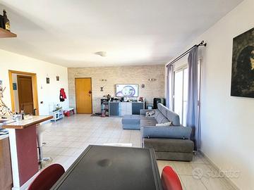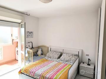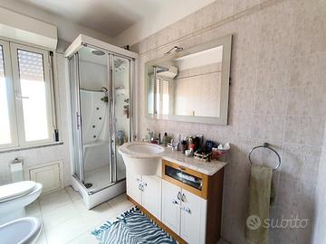 La disposizione intelligente degli spazi include un disimpegno che separa la zona giorno dalla zona notte, garantendo privacy e tranquillità. Troverai tre spaziose camere da letto, tutte con accesso al balcone di servizio, un secondo balcone/veranda ideale per momenti di relax all'aria aperta. Il bagno è dotato di una moderna cabina doccia, mentre l'appartamento è servito da due climatizzatori e una stufa a pellet, assicurando comfort in ogni stagione.
