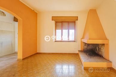 L'immobile si trova all'interno di un fabbricato composto da tre unità abitative. Al piano terra sono presenti un cortile carrabile, un garage, una cantina, una cucina di servizio e una legnaia, spazi ideali sia per uso quotidiano che per eventuali progetti di ampliamento o personalizzazione. Al piano rialzato sono invece presenti due camere da letto, un soggiorno con angolo cottura e un bagno.
