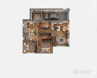 A pochi minuti dalla Villa Comunale di Pomigliano d'Arco, proponiamo in vendita, in un piccolo e signorile condominio di via Via Alessandro Volta, un ampio appartamento di quattro vani con doppi accessori, situato al piano terra, completo di box auto di proprietà di circa 50 mq.