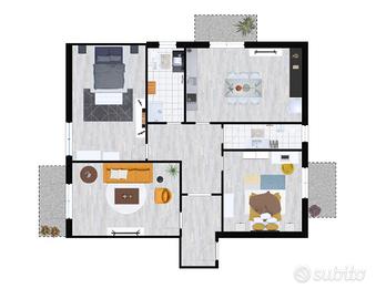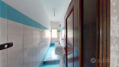 Proseguendo, troviamo una camera da letto anch'essa luminosa grazie alla presenza di un secondo balcone. Proseguendo ancora, c'è un primo bagno con lavanderia e una cucina che si affaccia sul terzo balcone, creando un ambiente luminoso e arioso.