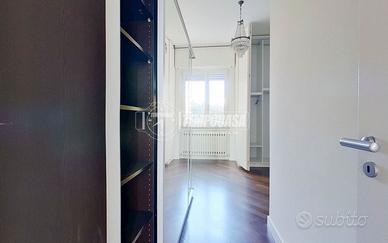 La zona notte è divisa dalla zona giorno da una porta in legno a scomparsa che apre su un disimpegno dove si trova una camera matrimoniale, una cabina armadio, un bagno principale e un ulteriore camera da letto matrimoniale con all'interno bagno e cabina armadio.