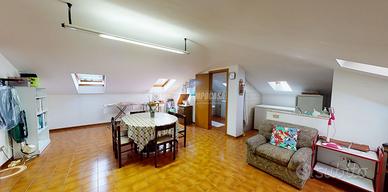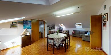 L'immobile si trova al secondo piano di una piccola palazzina senza ascensore; si sviluppa su 130 mq ed è così composto: dal disimpegno d'ingresso è possibile accedere all'ampio soggiorno di oltre 30 metri con uscita sul primo balcone, ed alla cucina abitabile di 12 metri servita da un altro balcone; la zona notte si compone di due camere da letto matrimoniali, rispettivamente di 16 e 18 mq, una camera singola, un bagno principale con vasca e bagno di servizio con box doccia. La proprietà è completata da una mansarda di oltre 45 mq alla quale si può accedere direttamente dal soggiorno, oltre ad un garage di 26 mq.