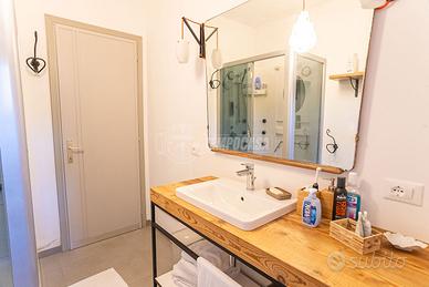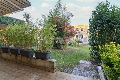 L'immobile risulta così composto: ingresso su ampia zona giorno con cucina a vista ed accesso al TERRAZZO, disimpegno zona notte dove troviamo TRE CAMERE MATRIMONIALI, di cui una con bagno privato e balcone, la seconda gode di ampia metratura e la terza ha l'accesso diretto al giardino privato di circa 120 mq, infine il secondo bagno finestrato con doccia.