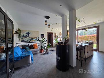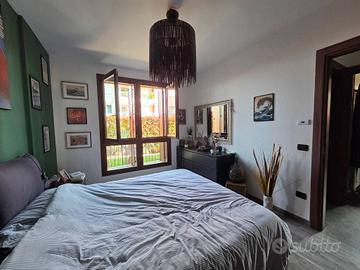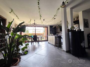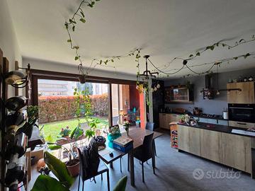Rif:056R (128259500) - Elegante Trilocale con Ampio Giardino Privato a Monticelli Terme Immerso nella tranquillità e situato proprio di fronte all'ingresso pedonale del Parco delle Terme, proponiamo in vendita un rifinitissimo appartamento seminuovo inserito in un contesto condominiale signorile di recente costruzione. La posizione dell'immobile è privilegiata e coniuga armoniosamente il relax della vista sulla campagna con la massima comodità, avendo tutti i servizi del paese come banca, farmacia, negozi e ristoranti a pochi passi da casa. L'abitazione si distingue per l'ampio giardino privato che circonda la proprietà su due lati, già dotato di impianto di irrigazione automatizzato e protetto da una fitta siepe a garantirne la privacy. All'interno, l'ingresso principale si apre su una luminosa zona living open space con cucina open space, resa unica da una grande vetrata che affaccia direttamente sulla loggia e sul verde esterno di proprietà. Un corridoio conduce alla zona notte, composta da una camera matrimoniale, una camera singola e un bagno moderno con una spaziosa doccia. Vero valore aggiunto dell'immobile è la grande taverna finestrata al piano inferiore, collegata internamente da una comoda scala ma accessibile anche autonomamente dal giardino tramite una scala esterna. Questo ambiente, completo di un secondo bagno finestrato e un funzionale ripostiglio, gode di riscaldamento a pavimento con termostato indipendente e si presta a molteplici utilizzi, trasformandosi all'occorrenza in uno studio professionale riparato o in un bilocale per ospiti quasi del tutto autonomo. La proprietà è stata realizzata con i più moderni criteri di comfort ed efficienza energetica, offrendo riscaldamento a pavimento, aria condizionata (n. 2 split, living e zona notte) e finiture di pregio in ogni ambiente. Il condominio è dotato di addolcitore d'acqua e di un impia - Classe: A1 - IPE: 97.00 kWh/mq anno