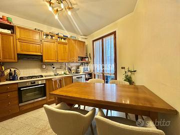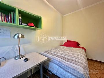 L'appartamento, situato al primo piano, si apre su un comodo disimpegno che conduce alla zona giorno, composta da un ampio soggiorno e una cucina abitabile, entrambi con accesso diretto al balcone. La zona notte comprende una camera matrimoniale, due camerette e un bagno finestrato.
