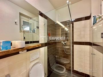 Al secondo livello, un'accogliente MANSARDA ospita una TERZA CAMERA da letto e un ULTERIORE BAGNO CON DOCCIA, impreziosito da FINITURE IN MOSAICO che donano un tocco di charme.