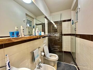 Sempre al primo livello, la zona notte è composta da una CAMERA MATRIMONIALE, una SECONDA CAMERA (ideale come cameretta o studio) e DUE ELEGANTI BAGNI finestrati: uno con VASCA, l'altro con MODERNA DOCCIA.