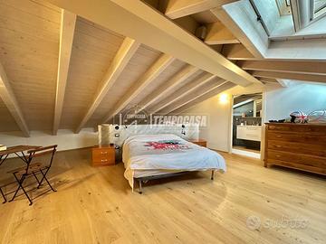 Al secondo livello, un'accogliente MANSARDA ospita una TERZA CAMERA da letto e un ULTERIORE BAGNO CON DOCCIA, impreziosito da FINITURE IN MOSAICO che donano un tocco di charme.