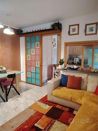 Limmobile è composto da soggiorno, cucina separata, disimpegno, camera matrimoniale, camera singola, bagno finestrato e una terza stanza adatta come ripostiglio o studio con secondo terrazzo rivolto verso una corte interna. Completano la proprietà una soffitta e un comodo posto auto al piano terra.