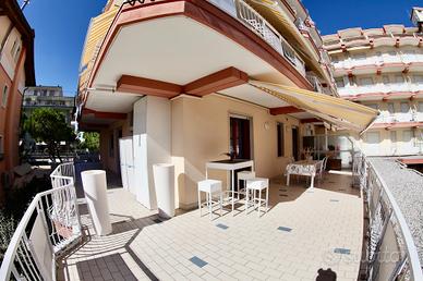 Nella centralissima Piazza Aurora, a soli 30 metri dalla spiaggia, si trova questo esclusivo appartamento di ca. 212 m² al primo piano con vista mozzafiato sul mare.