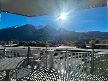 La zona giorno comprende una cucina abitabile e un soggiorno con vetrata scorrevole a tutta altezza che rende l'ambiente molto luminoso e che si apre su un ampio balcone panoramico: il luogo ideale per sorseggiare un caffè al sole o trascorrere serate in compagnia, con lo sguardo che si perde nella maestosità del Monte Emilius.