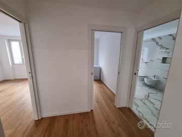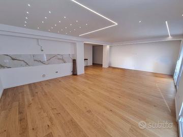L'immobile si sviluppa su una superficie di 157 metri quadri e si compone di: ingresso, ampia cucina-soggiorno open space con 2 terrazzini affacciati su via Fabio Severo con vista, una camera matrimoniale con ampio bagno padronale già arredato, ulteriori due camere di cui una con terrazzo sul lato interno, un secondo ampio bagno finestrato, un ripostiglio.