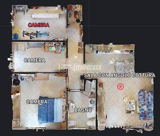 L'ingresso si apre su un luminoso soggiorno con angolo cottura, dotato di accesso diretto al primo balcone. Un disimpegno conduce alla zona notte, composta da una camera matrimoniale, due camere 3/4 (di cui una con secondo balcone) , un bagno e un ripostiglio.