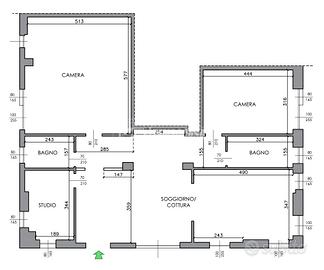Proseguendo si accede alla zona notte, composta da una camera matrimoniale, seconda grande camera ideale per bambini e terzo locale adibito ad oggi a studio.