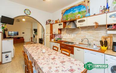 L'ingresso accoglie subito una grande zona giorno con cucina abitabile separata da una parete ad arco, ideale per passare momenti in famiglia.