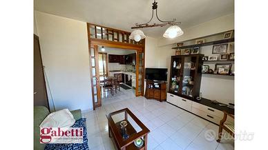 un'ampia porta scorrevole in legno divide i due ambienti: salone e cucina abitabile, un bagno,due camera da letto tra cui una di essa è impreziosita da un bel camino, una lavanderia con servizio e due verande esterne.